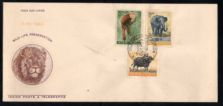 India 1963 Wild Life Preservation Elephant Panda Ox Animals 3v Phila-388-90 FDC # 6840