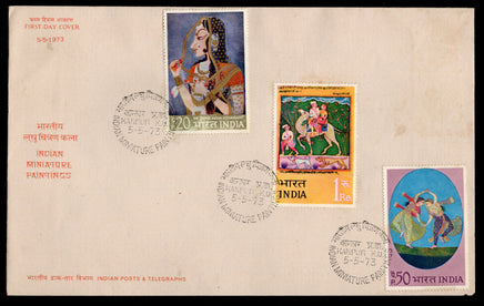 India 1973 Indian Miniature Paintings Dance 3v Phila-573-75 FDC # 9008