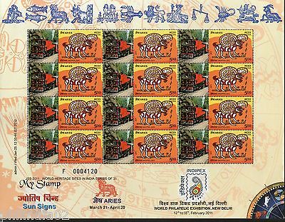 India 2011 Sun Signs - Aries - Kalka Shimla Railway Heritage My stamp Sheetlet