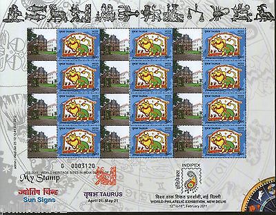 India 2011 Sun Signs - Taurus - Basilica of Bom Jesus Heritage My stamp Sheetlet
