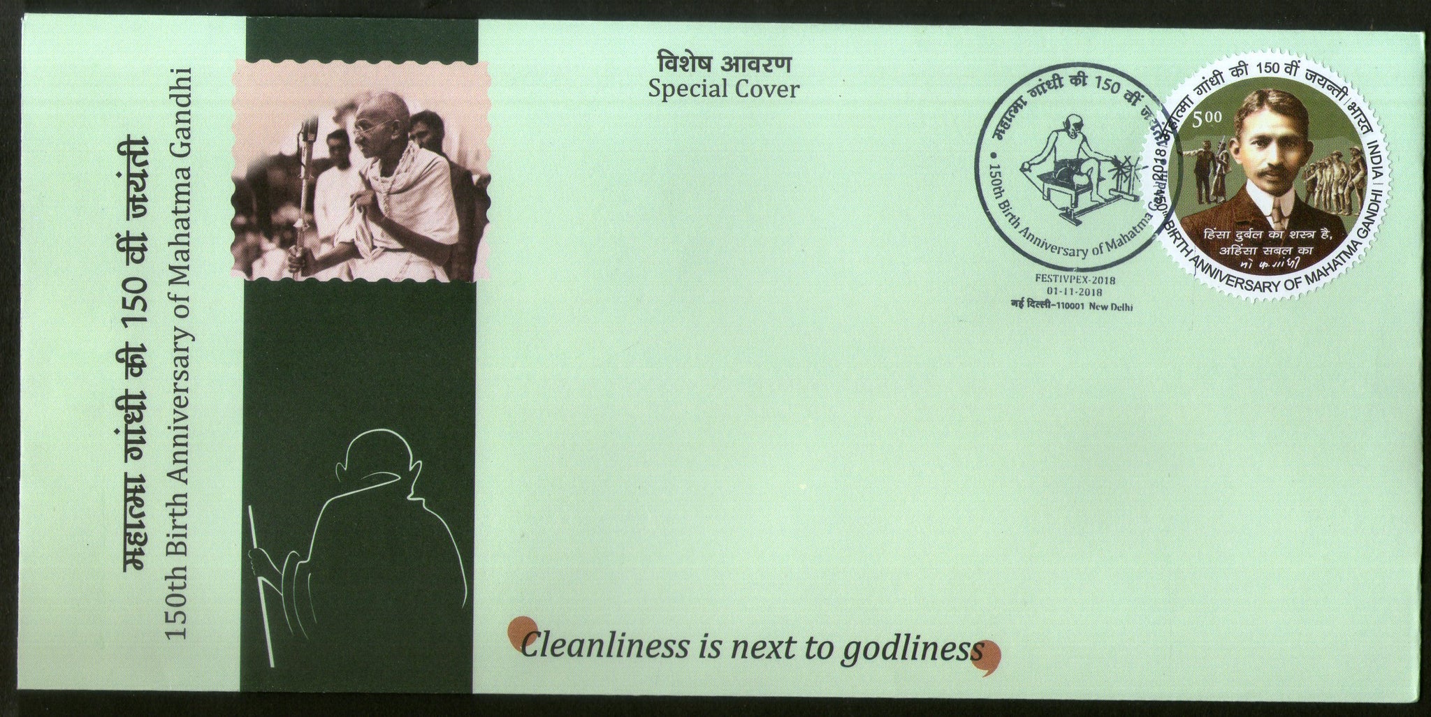 India 2018 150th Birth Mahatma Gandhi Cleanliness is Next to Godliness Special Cover #18507
