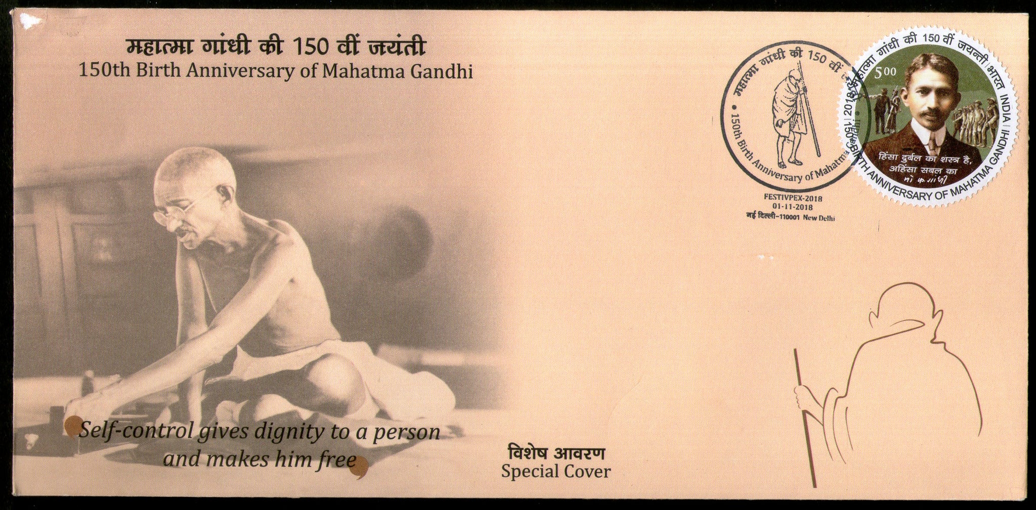India 2018 150th Birth Mahatma Gandhi Self Control Gives Dignity Special Cover # 18506