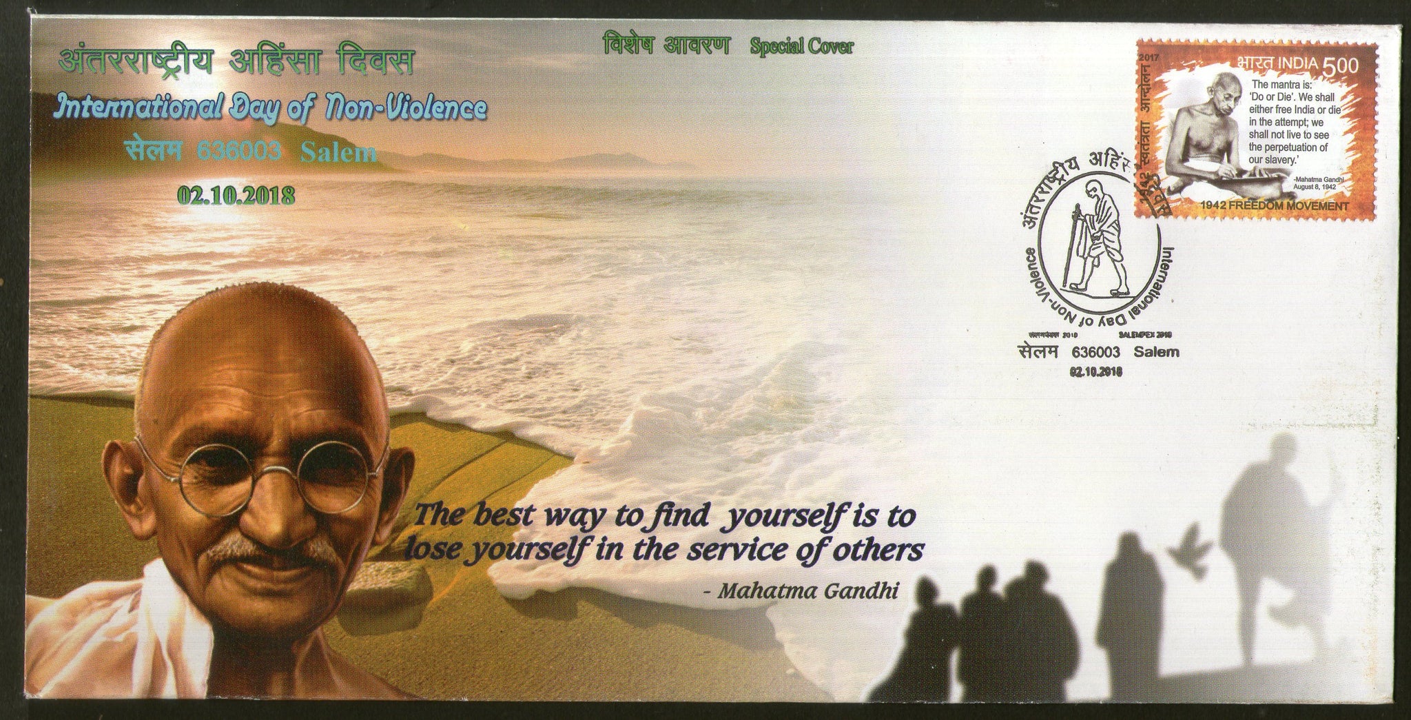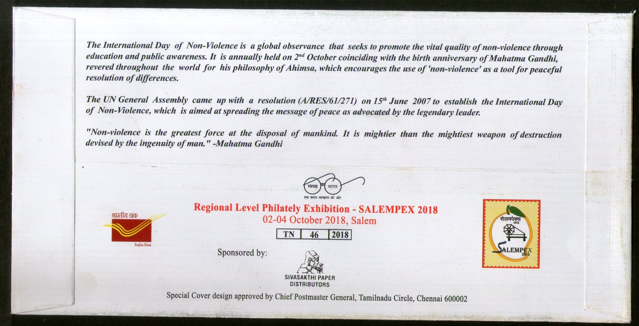 India 2018 Mahatma Gandhi International Day of Non-Violence Special Cover # 6869