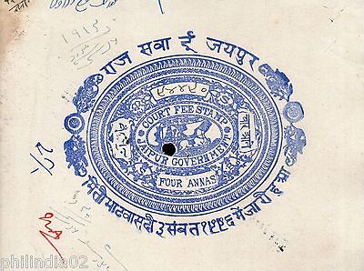 India Fiscal Jaipur State 4As Chariot Court Stamp Paper Type10 KM 103 # 10926H
