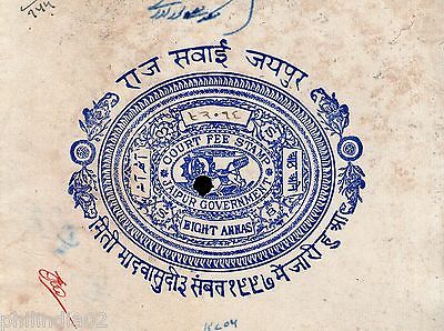 India Fiscal Jaipur State 8As Chariot Court Stamp Paper Type10 KM 105 # 10927F