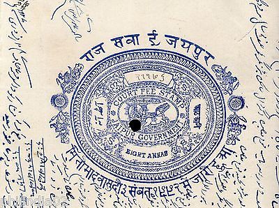 India Fiscal Jaipur State 8As Chariot Court Stamp Paper Type10 KM 145 # 10927H