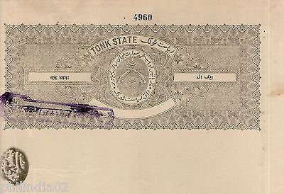 India Fiscal Tonk State 1 An Coat of Arms Stamp Paper TYPE 35 KM 351 # 10936B