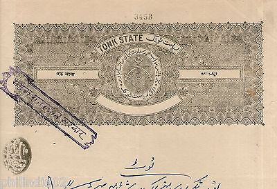 India Fiscal Tonk State 1 An Coat of Arms Stamp Paper TYPE 35 KM 351 # 10936E