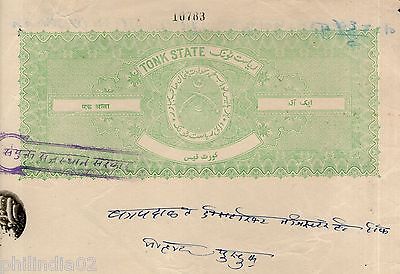 India Fiscal Tonk State 1 An Coat of Arms Stamp Paper TYPE 40 KM 401 # 10935B