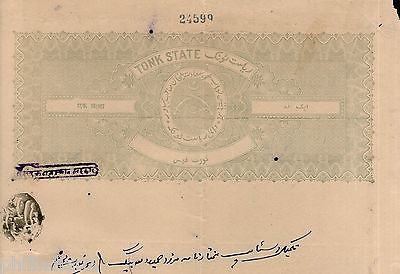 India Fiscal Tonk State 1 An Coat of Arms Stamp Paper TYPE 40 KM 401 # 10935D