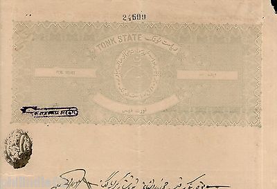 India Fiscal Tonk State 1 An Coat of Arms Stamp Paper TYPE 40 KM 401 # 10935E