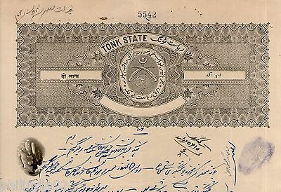 India Fiscal Tonk State 2 As Coat of Arms Stamp Paper TYPE 35 KM 352 # 10937C