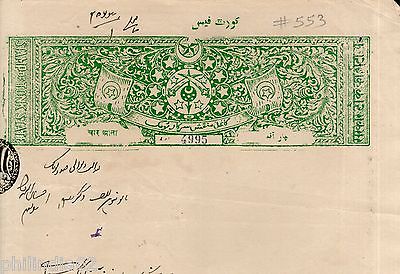 India Fiscal Tonk State 4 As Coat of Arms Stamp Paper TYPE 55 KM 553 # 10938B