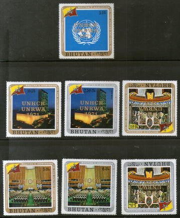 Bhutan 1971 World Refugee Year UN Emblem Flag O/p in Gold Sc 140-43, C24-26 MNH # 406