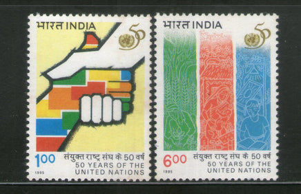 India 1995 United Nations Day Hand Flag Phila 1453-54 Set MNH
