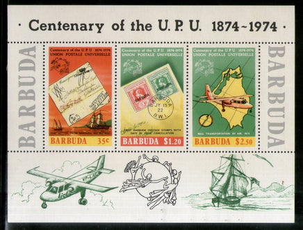 Barbuda 1974 Universal Postal Union UPU Centenary Ship Stamp on Stamp Sc 169a M/s MNH # 7604
