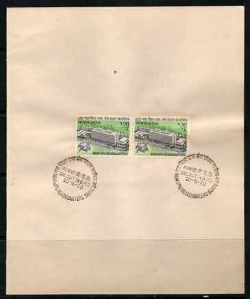 India 1970 New UPU Headquaters Phila-510 Pair FD Cancelled on Plain Paper