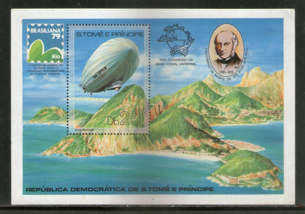 St. Thomas & Prince Is. 1979 Rowland Hill Zeppelin Graph UPU Mountain Sc 519 M/s MNH # 7726