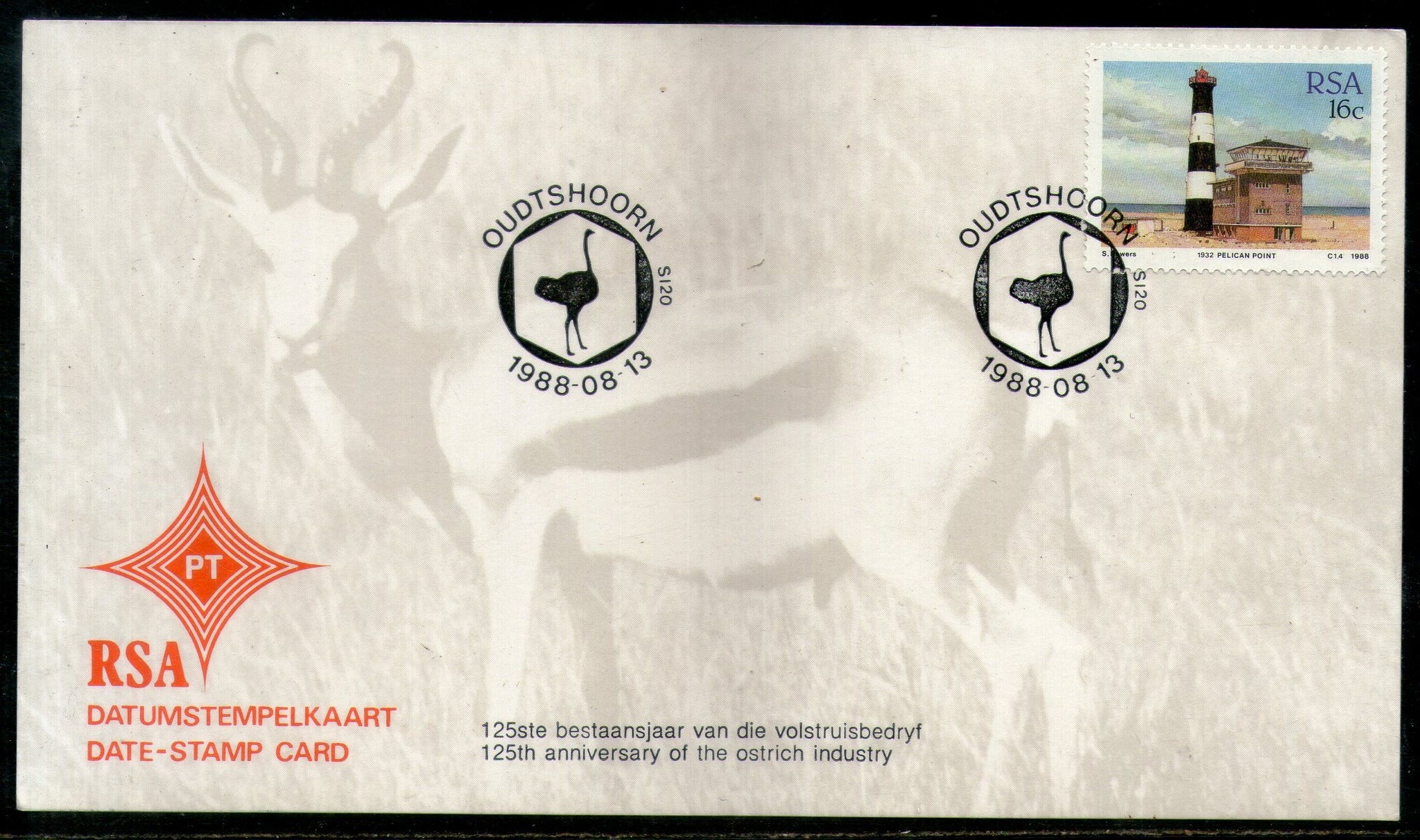 South Africa 1988 Ostrich Industry Anni. Birds Lighthouse Date Stamp Card #16530