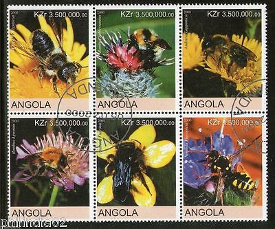 Angola 2000 Honeybees Insect Flower Fauna Setenant BLK/6 Cancelled # 13504