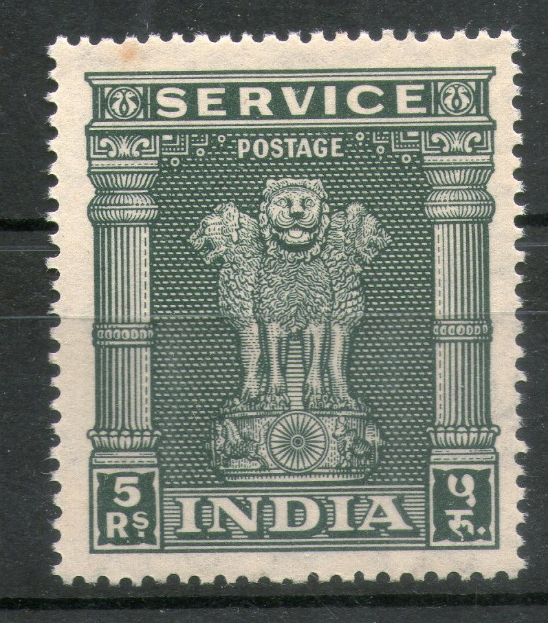 India 1958-71 Lion Capital 5 Rs Service WMK Ashokan Up Right Phila-S203 1v MNH - Phil India Stamps SALE