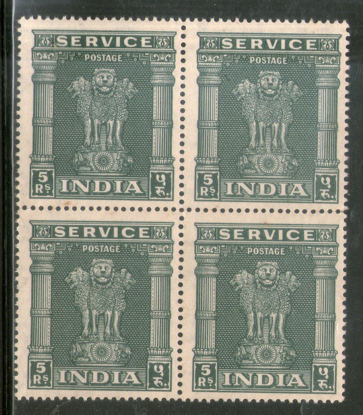 India 1958-71 Lion Capital 5 Rs Service WMK Ashokan Up Right Phila-S203 Blk4 MNH - Phil India Stamps SALE