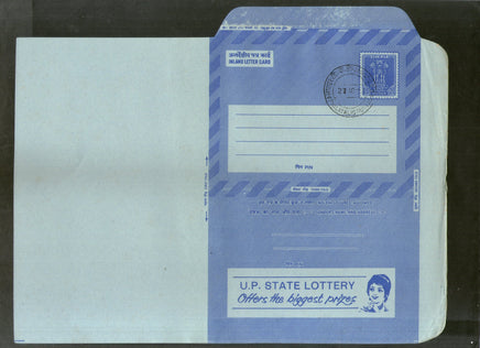 India 1976 20p Ashokan Inland Letter Card with U.P. State Lottery Advertisement ILC MINT # 26FD