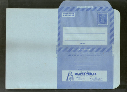 India 1977 20p Ashokan Inland Letter Card with Central Bank Swapna Yojana Advertisement ILC MINT # 40