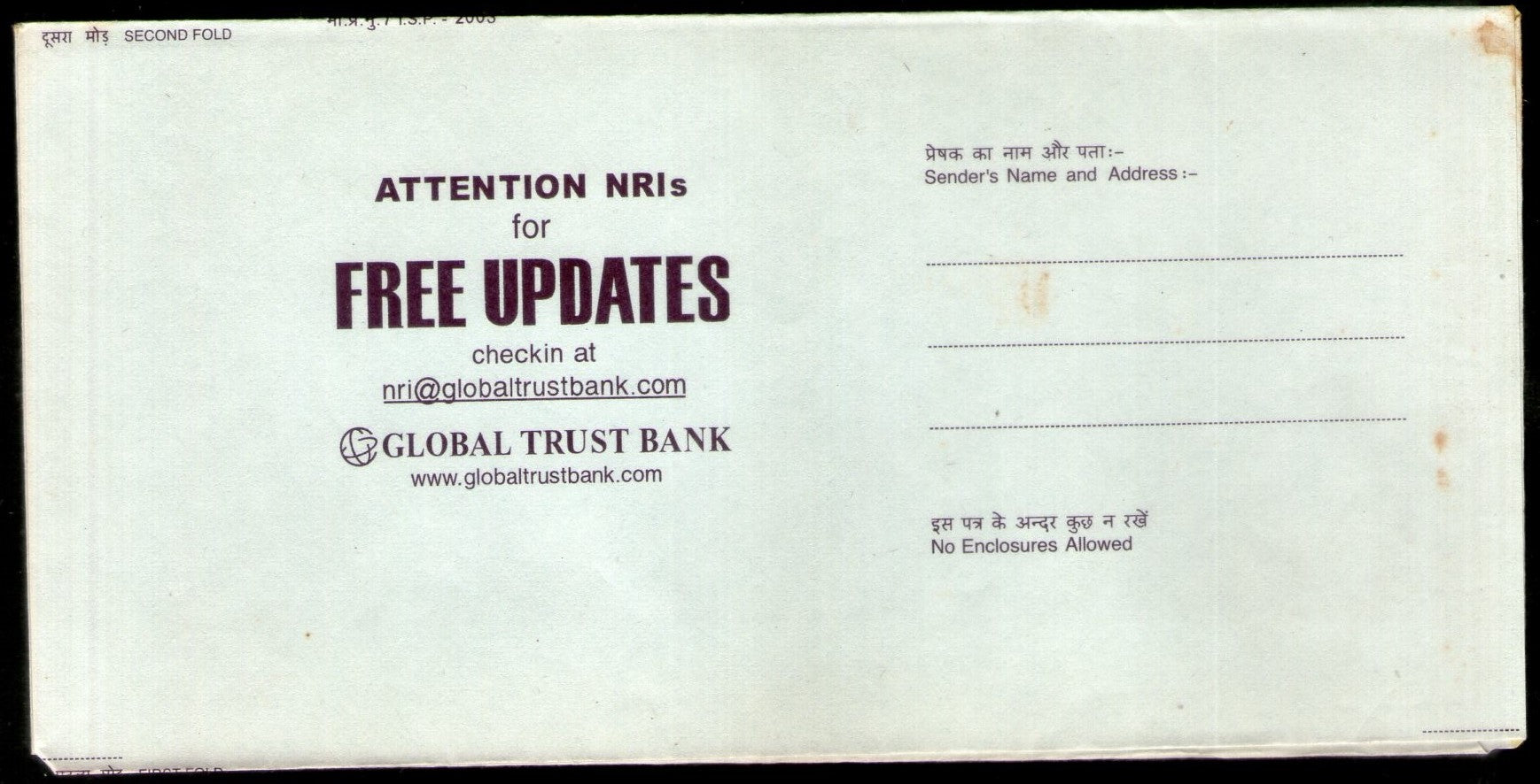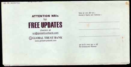 India 2003 850p Mahabalipuram Global Trust Bank Advt. Postal Stationary Aerogramme MINT # 16629/3