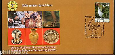 India 2014 Famous Brass Carving Hand Art Moradabad Pottary Peacock Cover # 6710