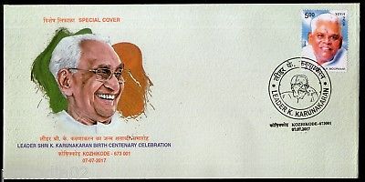 India 2017 Leader Shri K. Karunakaran Birth Celebration Special Cover # 18248A