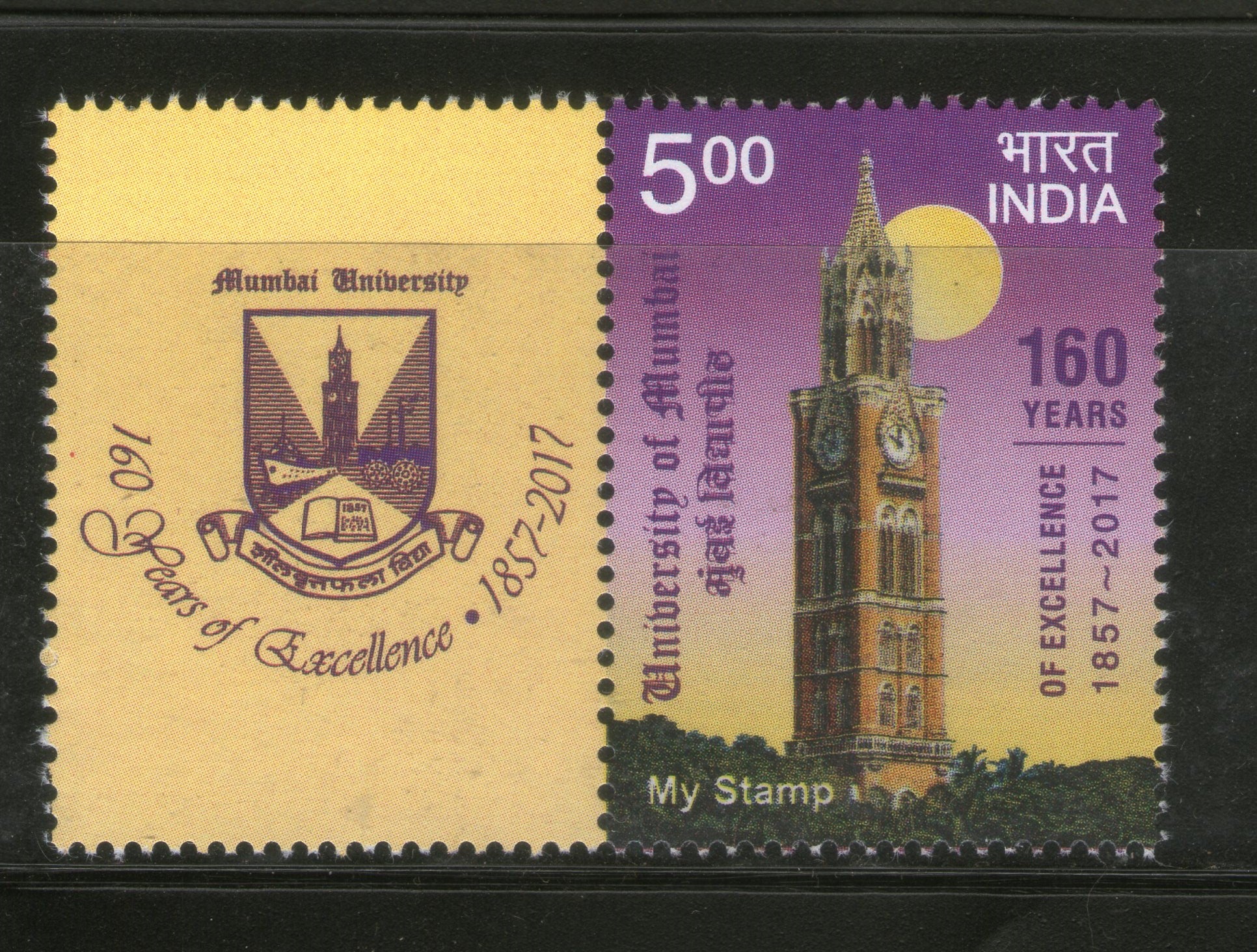 India 2017 University of Mumbai My Stamp Education Coat of Arms Clock MNH # M69