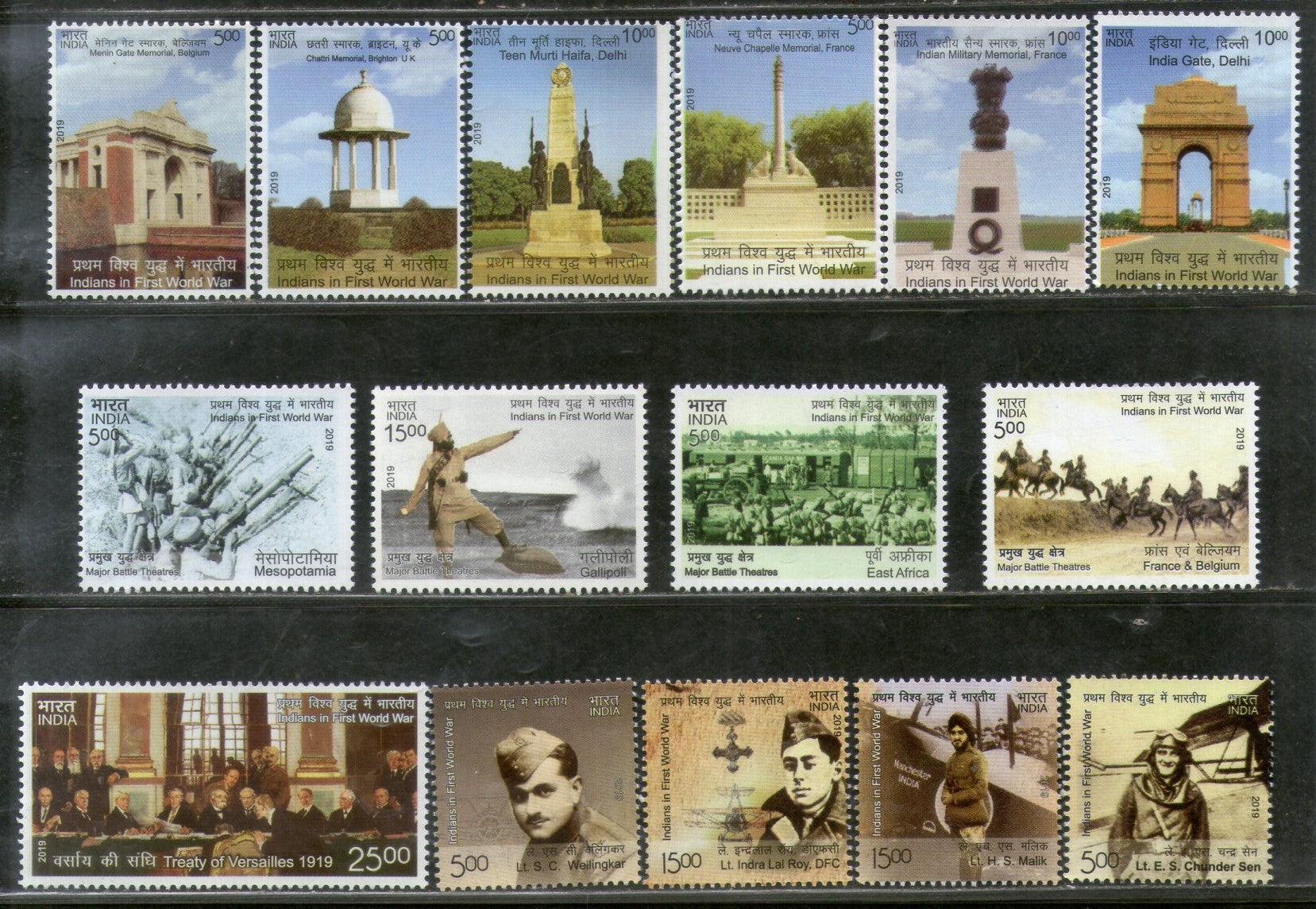India 2019 Indians in 1st World War Battle Field Memorials Aviation Military 15v MNH