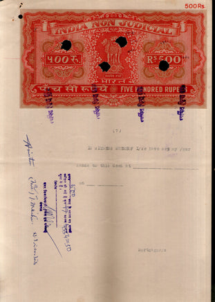 India Fiscal Rs.500 Ashokan Stamp Paper Court Fee Revenue WMK-17 Good Used # 113C