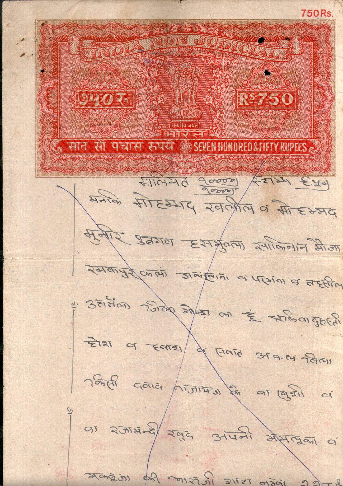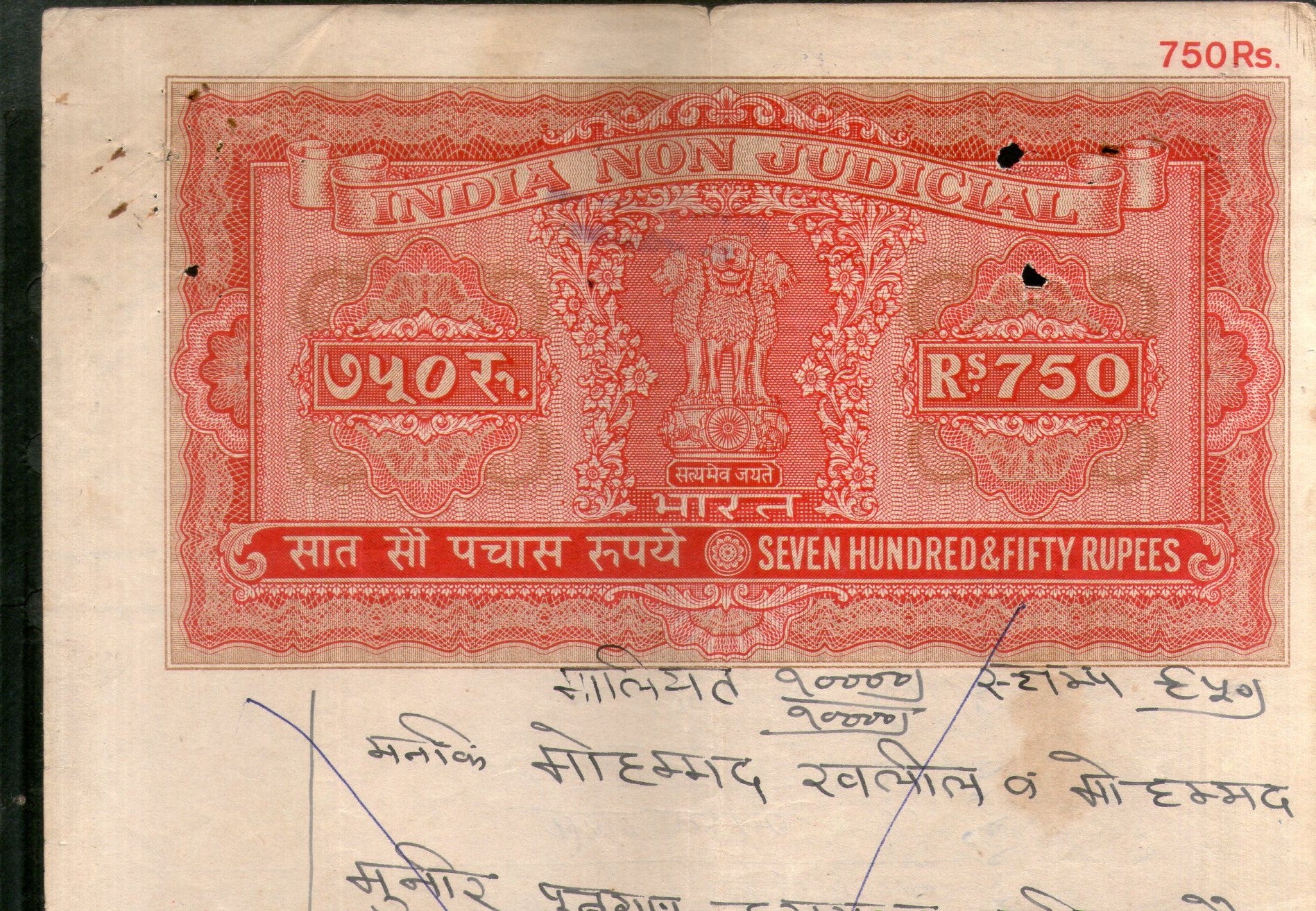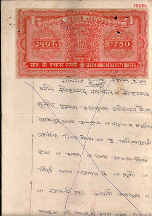 India Fiscal Rs.750 Ashokan Stamp Paper Court Fee Revenue WMK-17 Good Used # 83C