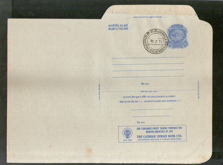 India 1978 20p Peacock Inland Letter Card with Catholic Syrine Bank LTD. Advertisement ILC MINT # 115
