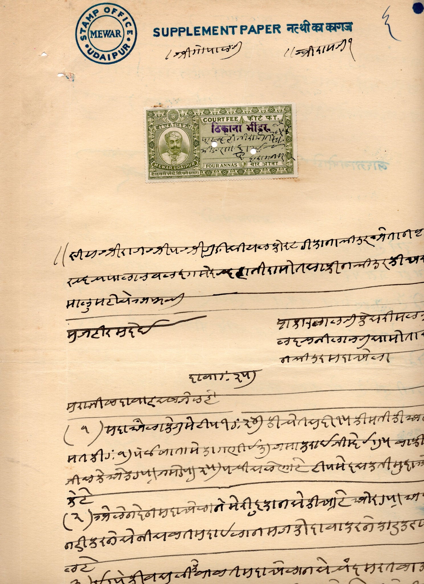 India Fiscal Thikana Bhindar O/P on Mewar State 4As Court Fee Revenue # 10558B