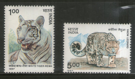 India 1987 White Tiger & Snow Leopard Wildlife Animal Phila-1109-10 MNH