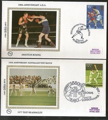 Great Britain 1980 Sport Cricket Boxing Football Athletic Benham Silk FDCs 13309