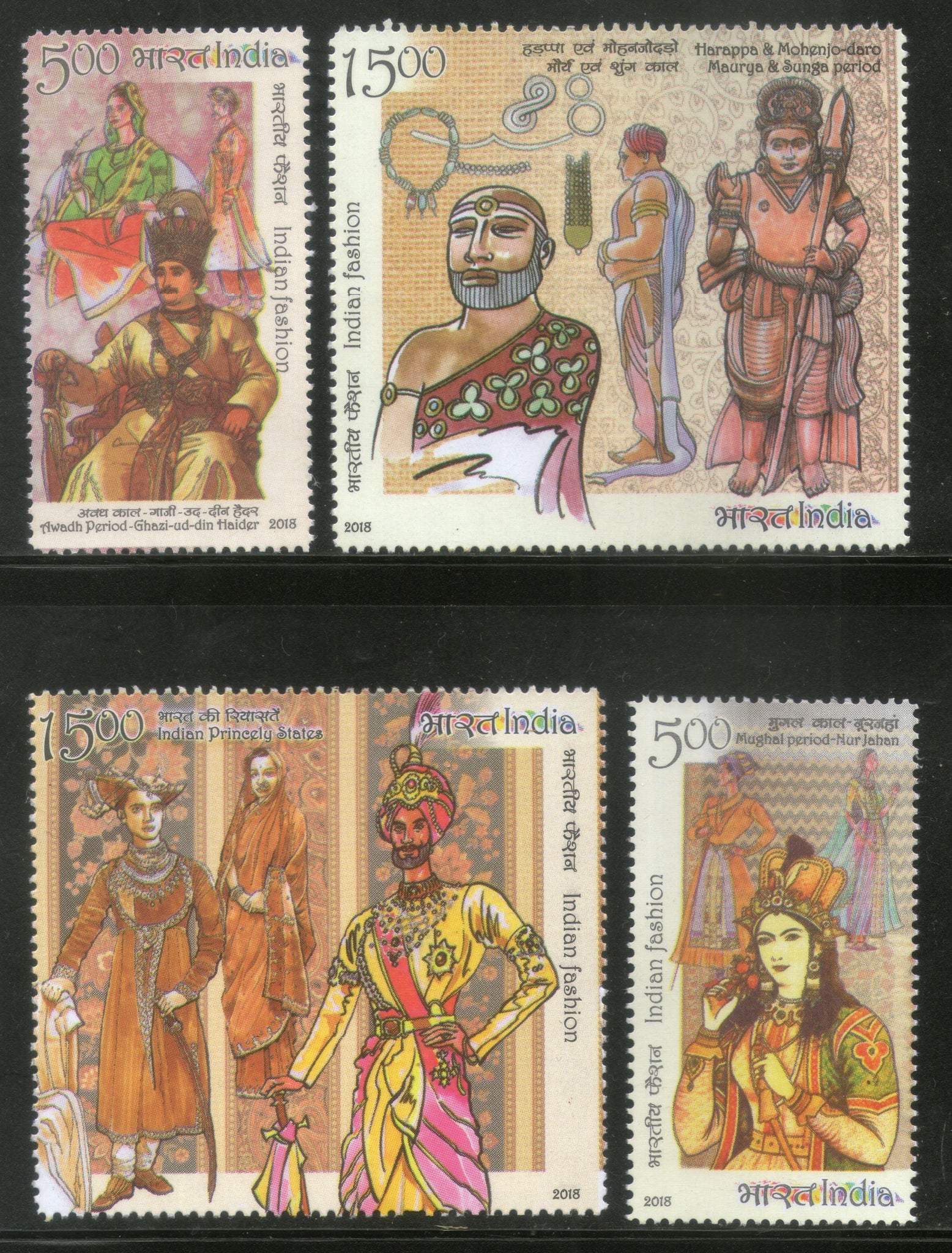 India 2018 Indian Fashion through the Ages Princely States Costumes 4v MNH