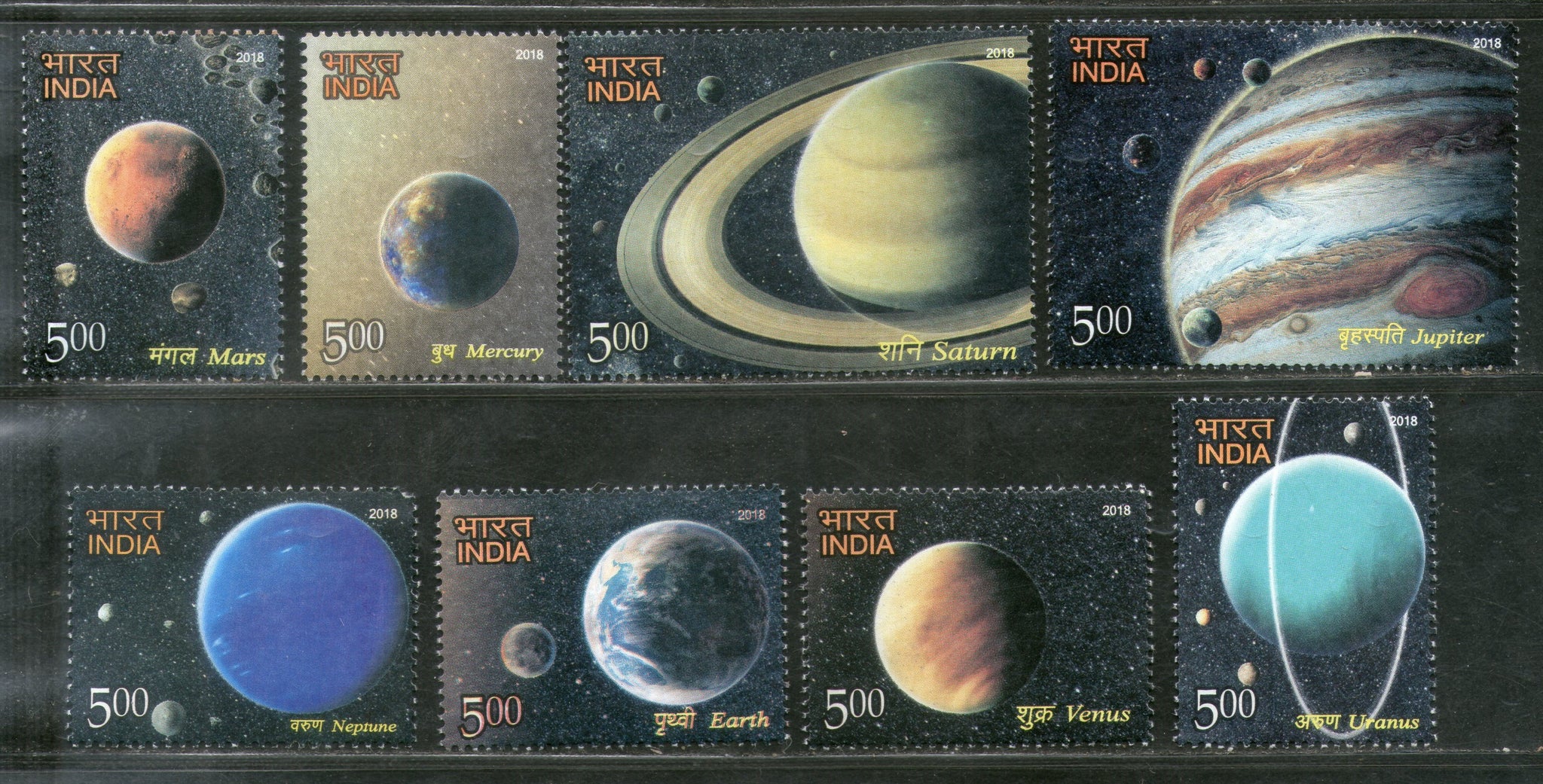 India 2018 The Solar System Space Science Mars Mercury Jupiter Venus Moon 8v MNH