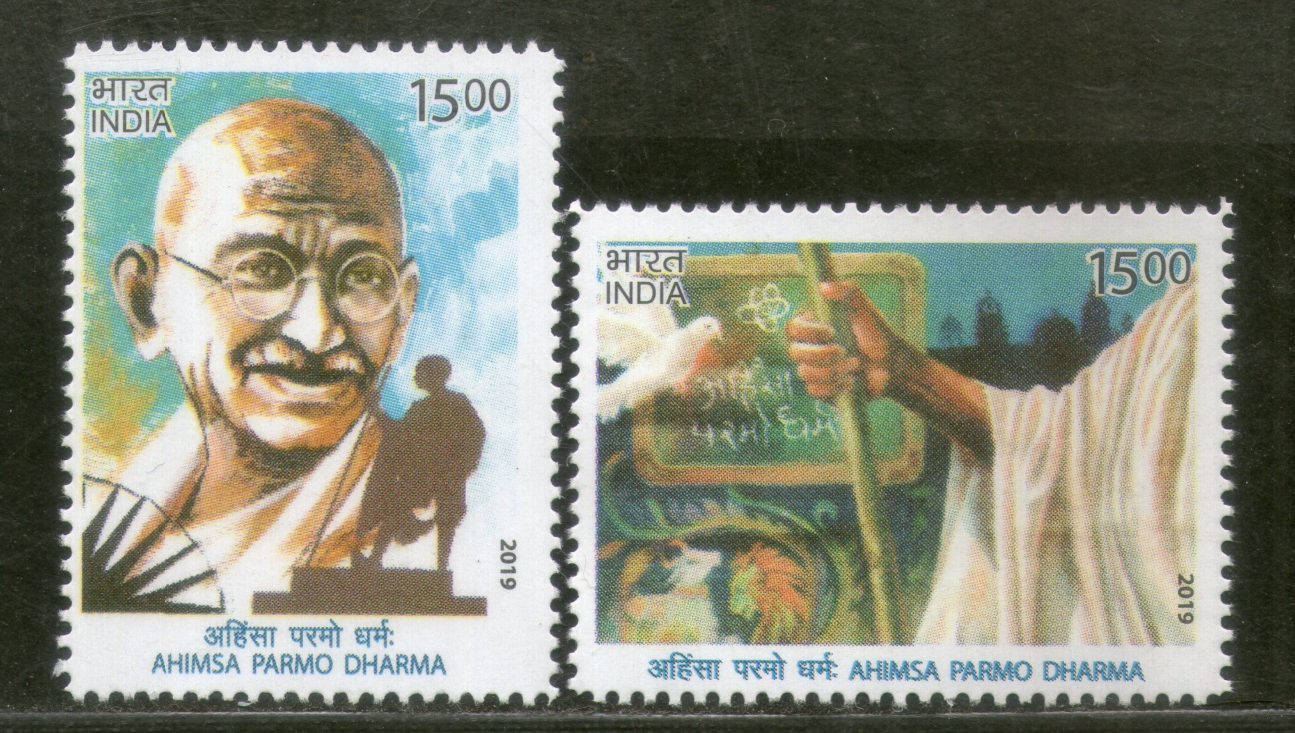 India 2019 Mahatma Gandhi Ahimsa Parmo Dharama Nonviolence Religion 2v MNH