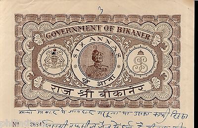 India Fiscal Bikaner State 6As Stamp Paper T80 KM805 Court Fee Revenue # 10568B