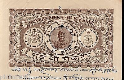 India Fiscal Bikaner State 6As Stamp Paper T80 KM805 Court Fee Revenue # 10568C