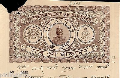 India Fiscal Bikaner State 6As Stamp Paper T80 KM805 Court Fee Revenue # 10568F