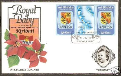 Kiribati 1982 Diana & Royal Baby Flower Map Gutter FDC # 594-3