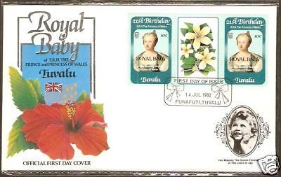 Tuvalu 1982 Diana & Royal Baby Flower Flag Gutter FDC # 594-25