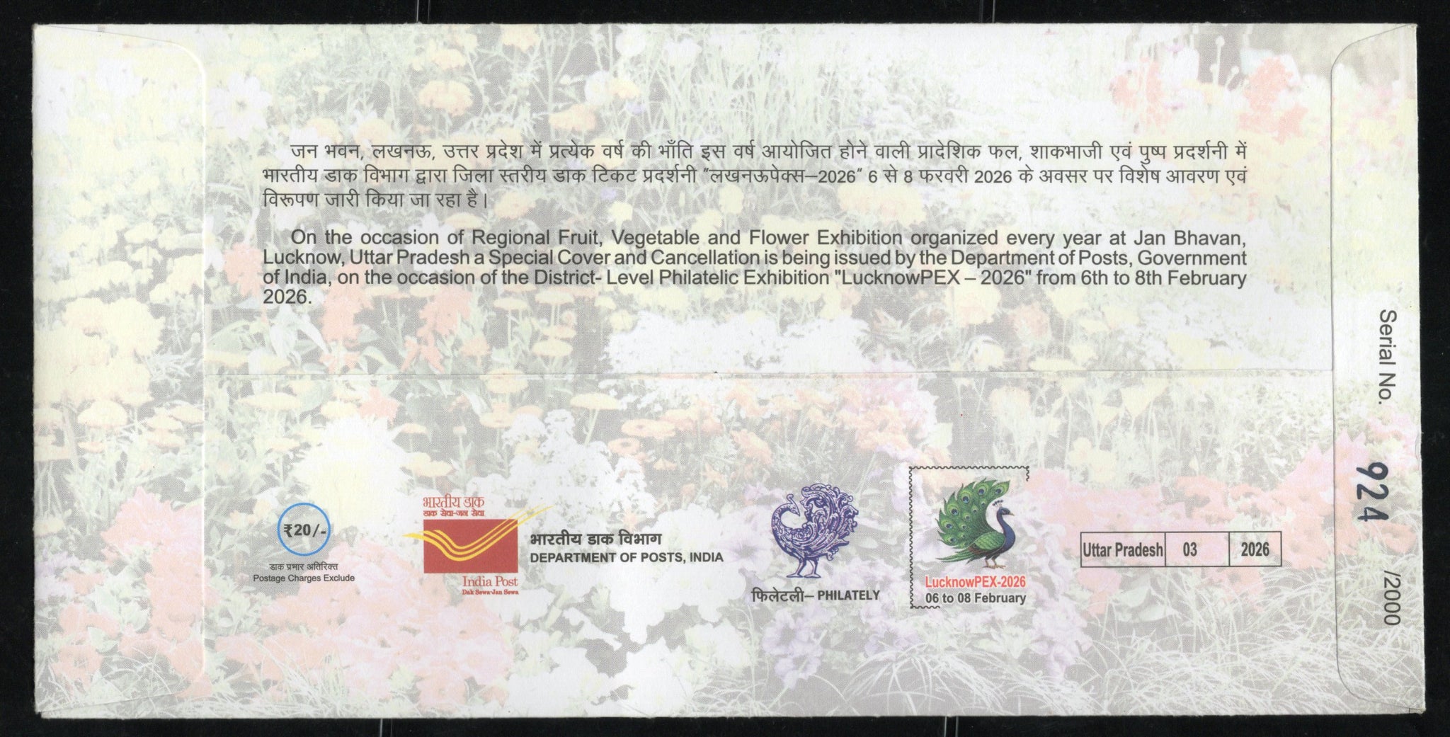 India 2026 Regional Fruit Vegetable Flowers Exhibition Special Cover # 7143