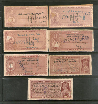 India Fiscal Kathiawar State 19 Diff. QV to KGVI Court Fee Revenue Stamp Used # 778