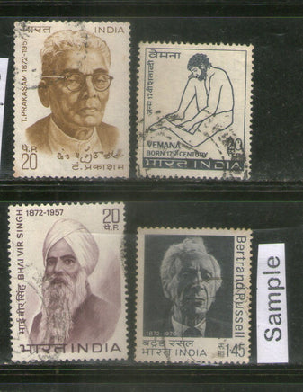 India 1972 Personalities Bertrand Russell Vemana Prakasham Vir Singh Phila-556-59 4v Used Stamp Set